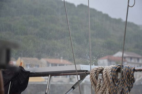 Le samedi 25 : Journée chargée. Mauro nous emmène dans son camping-car pour toute une série de courses (diesel, Lidl, etc...) On devait passer la soirée ensemble, et puis le temps s'est gâté. Et ça s'est mis à souffler fort du Nord, cette fois-ci. Du coup, c'est ici que le clapot était pénible. En plus, il nous envoyait trop proche d'un autre bateau. Bref, on est retournés vers le port de pèche.