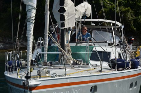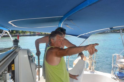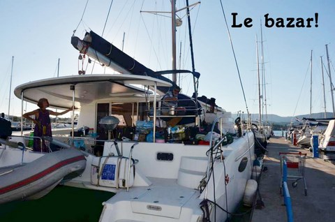 Aussitôt nous voici à leur bord et on entame les papotage, commentaires et autres bricolages. le soir, ils nous rejoignent au mouillage (vachement plus calme que le quai, bondé en cette période!)
