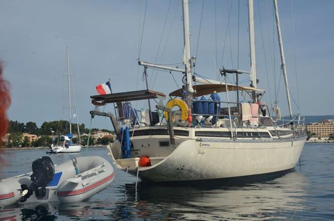 Jeudi ! Bon sang de bossoirs ( hihihi!) : Un autre Evasion 37 au mouillage! Hop, une visite, vite !Bien sur, ce sont des Trollonautes, ça nous aurait étonnés, vu comment qu'on est célèbres !