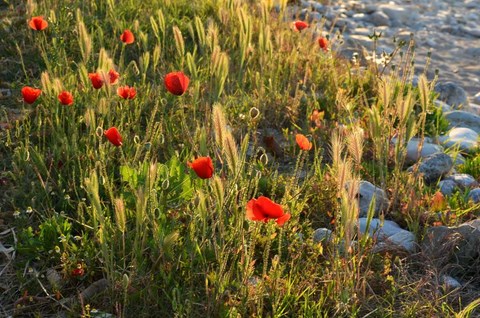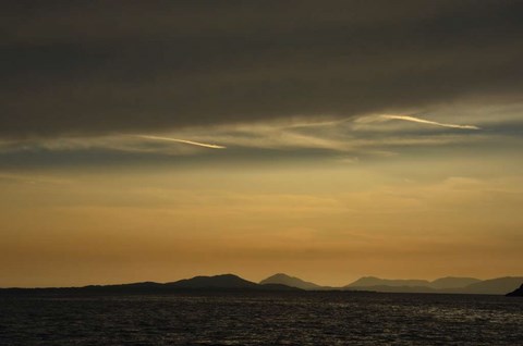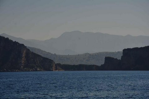 Après avoir tenté de crocher dans une petite crique, au nord 'Agios Stefanos, qui nous faisait bien envie, nous voici bientôt à Soukia, sur le coté nord d'Ormos Galiates. C'est beau, grand, et tranquille, même si un énorme machin y trône, en plein milieu (il ne nous gènera aucunement). Je fais une grande balade quasi crépusculaire avec ma toutoune, pendant qu'à bord, l'équipage prépare le repas du soir. La lumière est belle. J'en profite. (les deux premières sont pendant la nav' entre stéfanos et soukia)