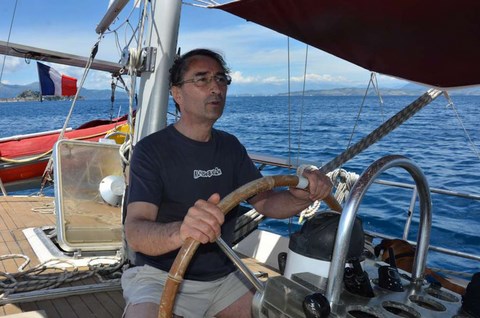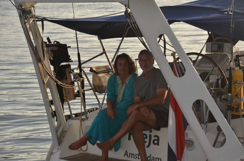 Voici donc, à nouveau, deux sympathiques Trollonautes ( on va finir par tous les connaitre!) Joëlle et Pierre, à bord de leur (très) beau bateau de voyage :