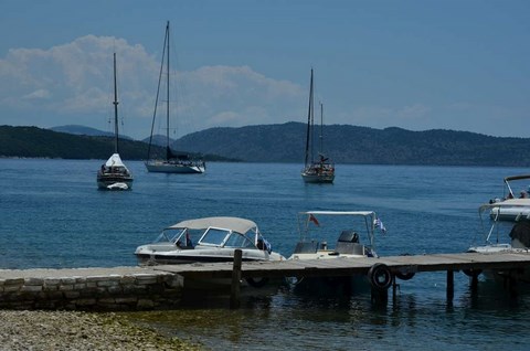 22juin : On a quitté nos copains "catamareux" à Pétriti. Pas envie d'aller à Mourtos ou à Parga, sans aucun doute bourrés de monde. On est donc retournés à Agios Ioanni qu'on avait tant aimé en 2008. Et on a bien fait car, quand nous sommes arrivés, on y était absolument seuls. Ensuite, il est arrrivé...deux autres voiliers...la foule ! Il a quand même fallu que, dans cet havre de paix, le plus luxueux des deux arrivants ( un voilier de plus de 60 pieds) fasse du ski nautique jusqu'à 9h le soir et dès 8h30 le lendemain matin ! Grrrrrrrrr !