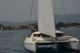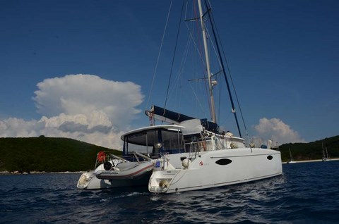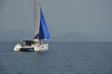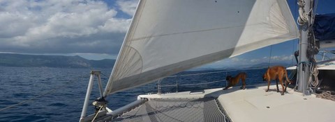 Ce joli nom, c'est celui que portera désormais le catamaran Orana 44, nouvellement acquis par nos chers amis Hélène et François et de Yamas, le grand copain de Javotte), dont on adorait le merveilleux First 42 ("Siné qua non" dont la présence en "petites annonces" dans nos pages, a accéléré la vente, ce dont nous ne sommes pas peu fiers!)
