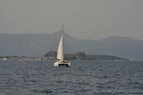 Mercredi 8 juin : Il n'y a, hélas, plus de vent. Sauf que, dans les jours à venir, il y aura orage et vent de Sud ! De toute façon, il nous faut remonter car Zeff est déjà au milieu de son séjour: Il repart de Corfou samedi soir. On vise donc un mouillage au nord de Corfou.