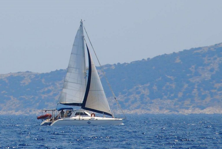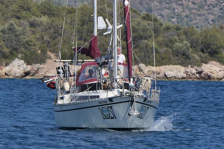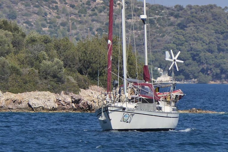 Ils mouillaient pas loin de nous! Mais ils n'osaient pas nous déranger, nous ont-ils confié, parce qu'il parait comme ça, que, pour eux, on serait une "légende de la mer Egée" !