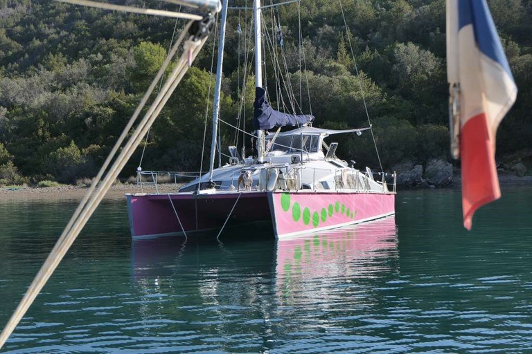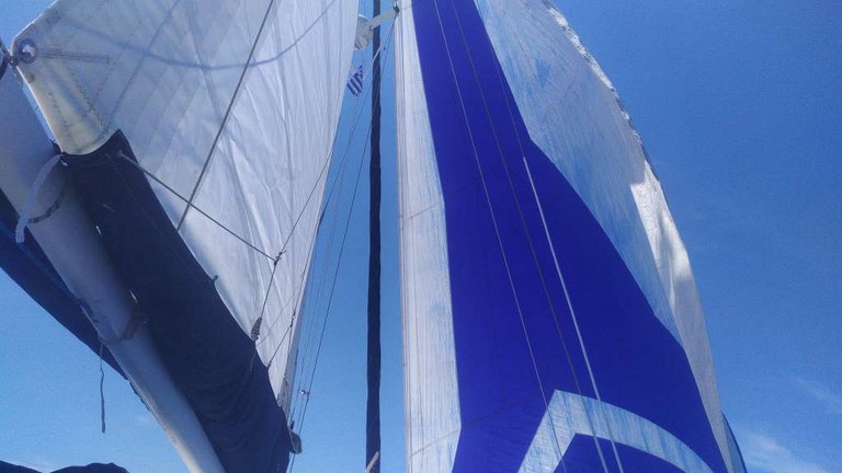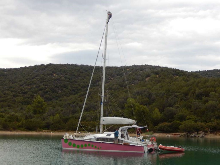 Bientôt, dès le mouillage effectué, le trait d'union, le fil tendu entre nos 2 dernières vies de bateau, entre monocoque et catamaran, est relié.