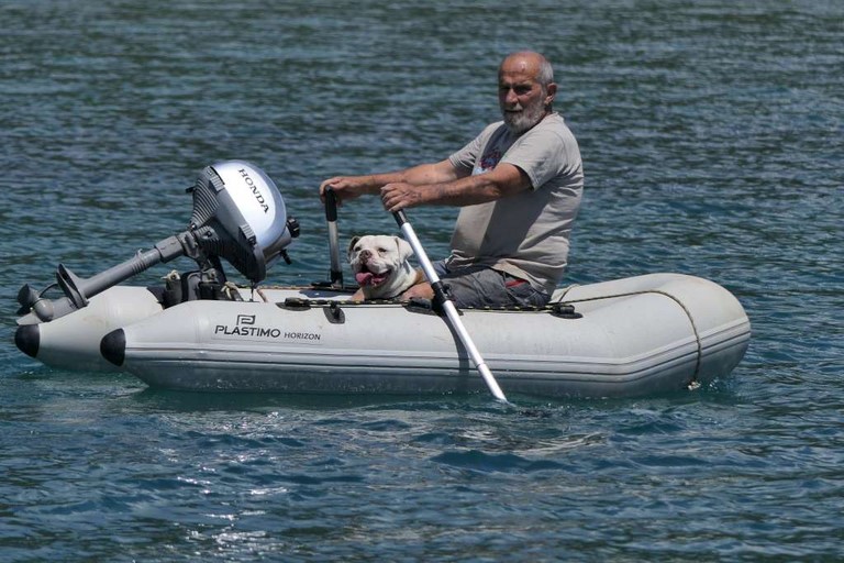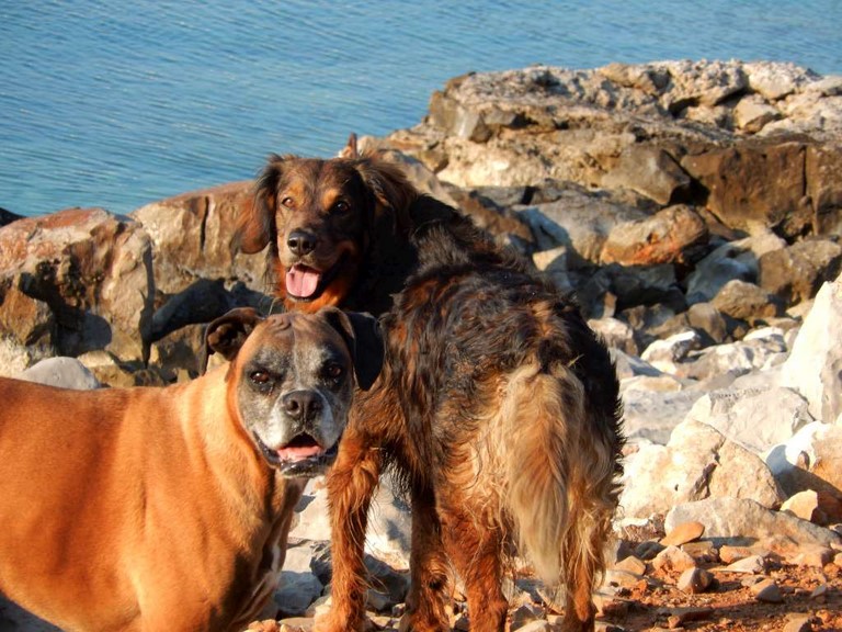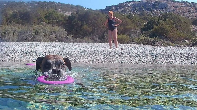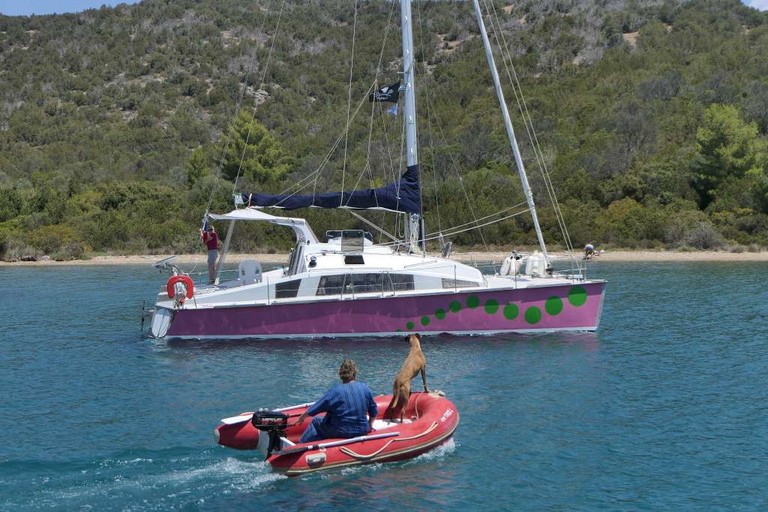 Or donc, la voilà au mouillage, la petite famille recomposée: le Patoche, la Grobigoutitine et la petite Shiva ! Comme ils sont contents d'être en Grèce et à l'eau