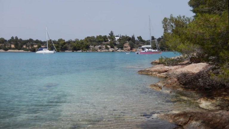 Ensuite, on est remontés en Baie de Poros, toujours en compagnie de Gromaran qui doivent faire opérer Shiva d'une hernie ce Lundi à Nafplio.