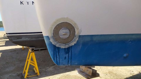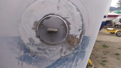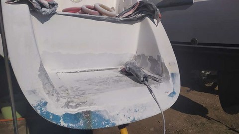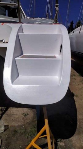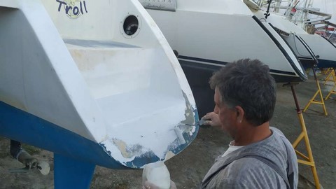 -Finition au gel coat de la jupe tribord terminée par Michaelis