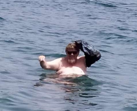 Première baignade de l'année pour Françoise, le 6 mai :