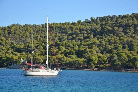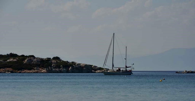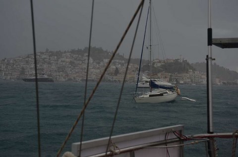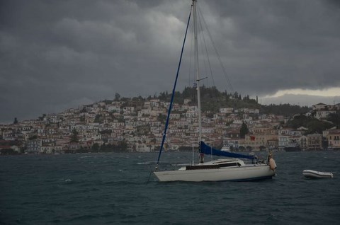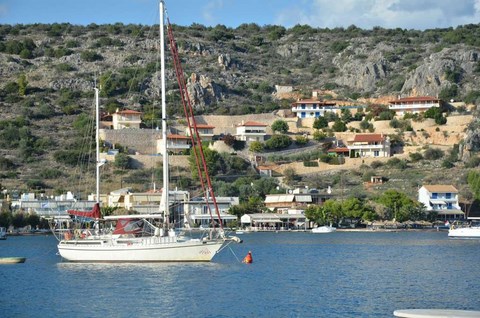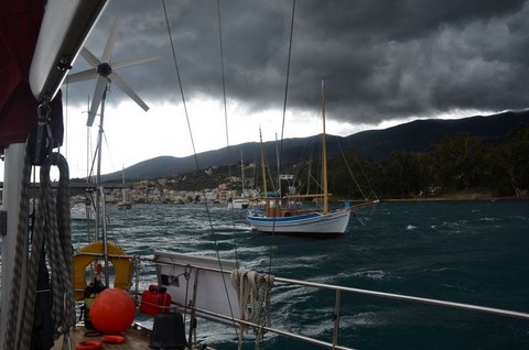 Y'a tellement de vent, que l'on décide de relâcher à Porto Chelli, histoire de faire le plein de la cambuse...et d'acheter du gasoil.