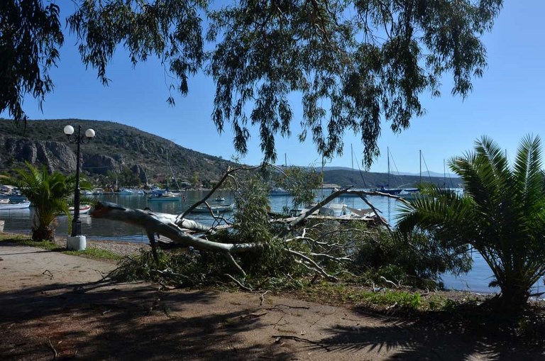 Du coup, là je regarde ! Oh Putain ! . Ce que j'y vois explique tout : Une vague gigantesque d'impact de foudre et de vent déferle sur nous et va sur Ermioni et Poros à tout allure: