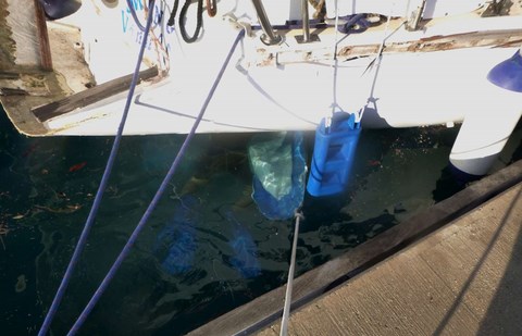 Après réflexion, je comprends que le grappin de notre annexe, en se retournant, s'est prise dans le corps-mort du voisin.