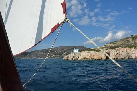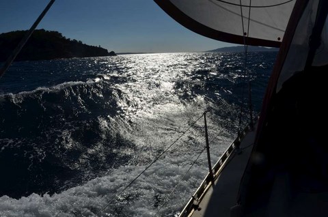 Mais, dès le franchissement du cap Korakas, c'est une nav' magnifique qui nous attend, largue, gran largue, puis vent arrière, avec des pointes au-delà de 8 noeuds: