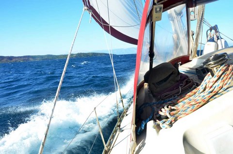 Et bien figurez vous que les 13 milles nous séparant de Vivari seront effectués INTEGRALEMENT à la voile, Youpi: