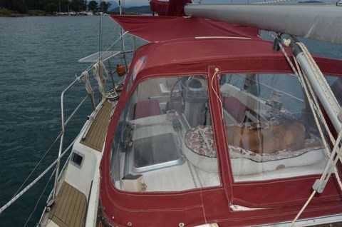 Ici, on va faire réparer bimini, capote et Trinquette par notre chère copine Daniela du magasin Kalypso.