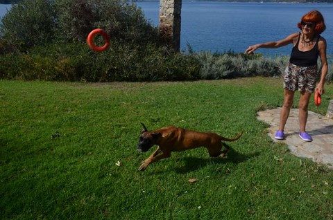 Vous remarquerez (ou pas) que Javotte a immédiatement repris, en conséquence, son poste de commandement. Le soir, Daniela et Michaelis nous invitent à la taverna. Qu'ils sont donc sympas!