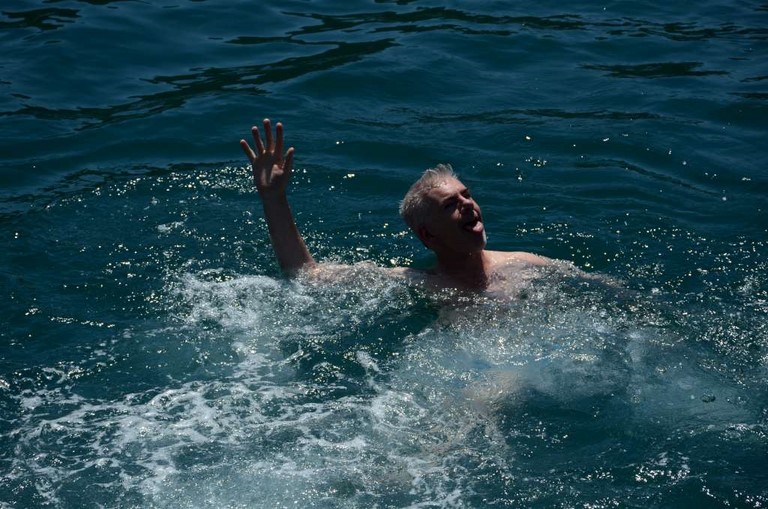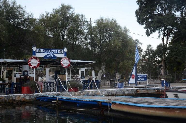 Coup de chance, quasi personne dans le port d'Evdilos, sur Ikaria. Les coast guards nous ayant assurés que le bateau ne risquait rien, installés au bout du quai, j'abandonnais illico bateau, épouse et chienne pour m'envoler, via 12heures de ferry, vers Clermont Ferrand.