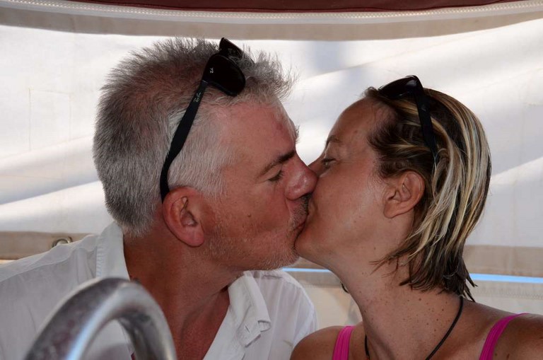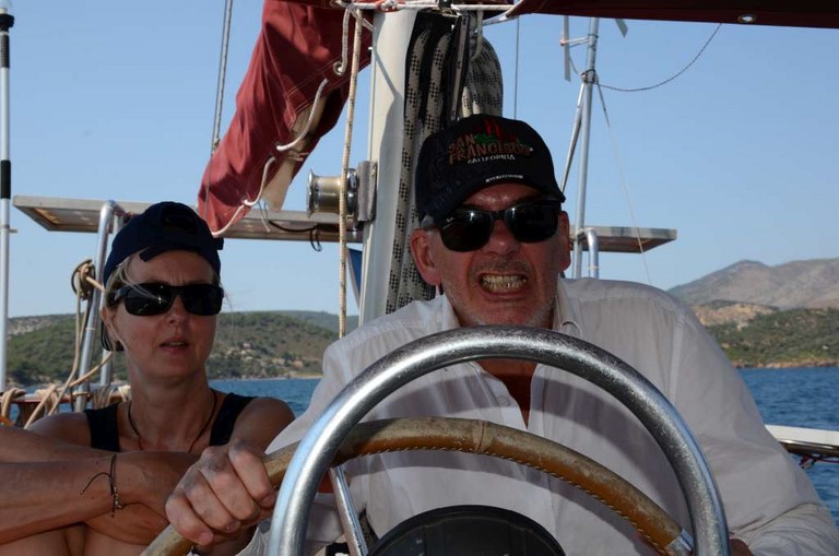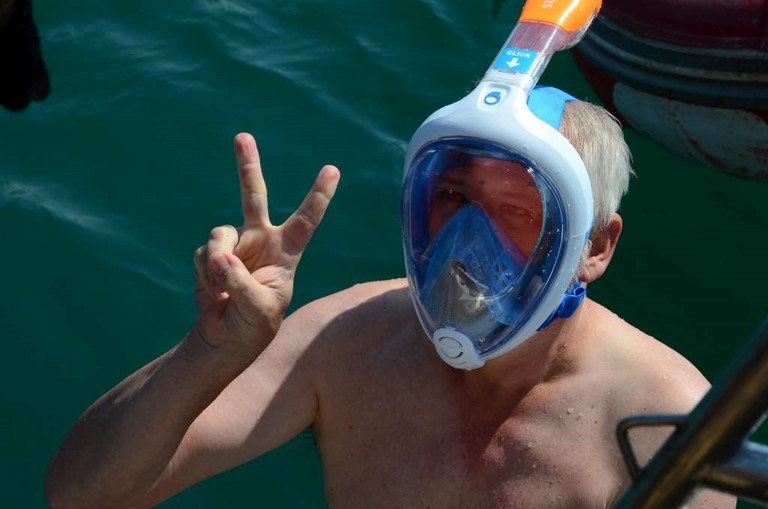 Génial, l'ami René, qui hiverne au même chantier que nous est dans le mouillage car il vient de partir pour sa navigation d'automne avec plsin de monde à bord!