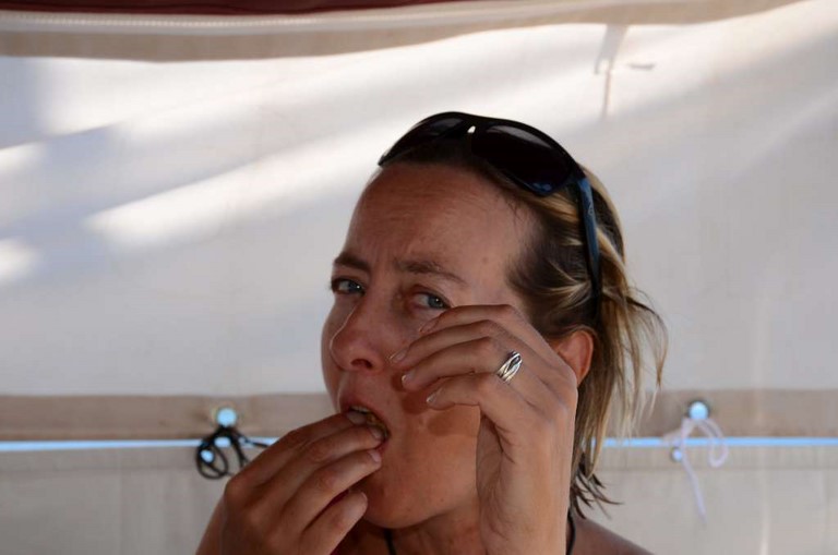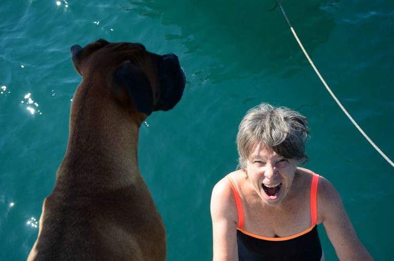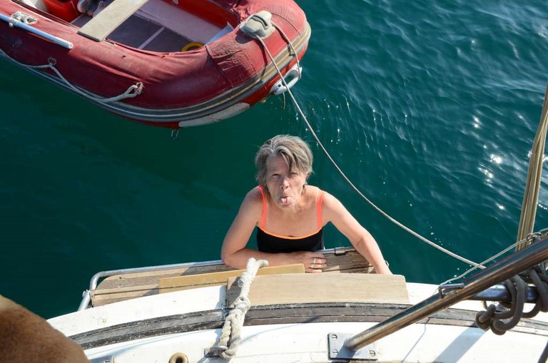 Entre les copains à bord, puis les copains au mouillage, Françoise n'a pas trouvé le temps trop long en mon absence.
