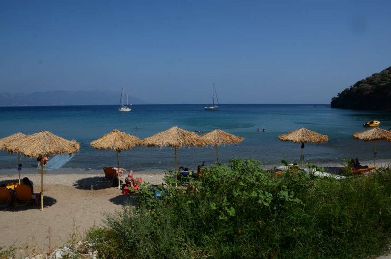 nous nous sommes retrouvés en villégiature forcée à Limnionas ( plus de 45 noeuds de vent de travers à l'arrivée!), attendant les conditions pour traverser vers Ikaria. Certes, l'endroit est charmant, mais je bouillais d'impatience, ne sachant pas combien de temps ma maman pourrait m'attendre ni combien de temps mon papa et ma soeur tiendraient devant l'énorme charge de boulot et d'angoisse....