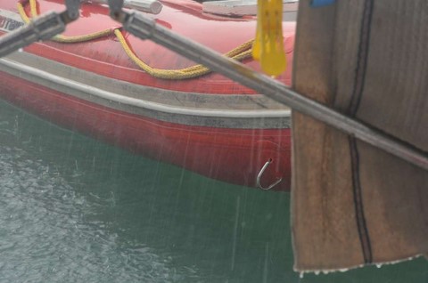 Alors, je l'ai remorqué à terre avec la mienne et avec ce vent, c'est dommage que je n'ai pas eu l'appareil photo pour vous en rendre compte ! Ce fut....hmmmm.... humide !