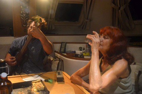 on a eu celle de Claude, Osthéopathe, acupuncteur et adepte du zen, qui navigue à bord d'un très viel AMEL. Super sympa le Claude. Il s'est occupé de fRançoise comme il a pu! Hélas, le résultat sur la douleur aux articulations n'a pas vraiment porté ses fruits. En revanche, Françoise a passé un super moment, entre d'autres mains que les miennes :