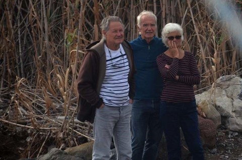 Et puis, on a eu celle d'Hugo, ci-devant fils de son père, l'ami Roland, qui a élu domicile permanent à Karistos. Il était avec ses potes, Pierre et Jonas. Du coup, Excellente soirée, lasagnes pour tout le monde, Ouzo à gogo, tarte au pommes " à la hugo", chansons pour nous, et pour nos oreilles le talent de Jonas et sa guitare ( enfin, la mienne, mais bref!). Admiration sans bornes, même si, pour Jonas, jouer en public est une torture acceptée qu'en échange d'un certain nombre d'ouzos, ce qui a fini par vaincre ses réticences. Quant au nombre d'ouzos ingurgités par ma pomme, tout aussi important, il doit, pour partie, expliquer l'infecte médiocrité des clichés de la soirée ! Je me demande si je ne vais pas me foutre mon nikon dans la gueule tellement c'est moche ! Mais il faut quand même que je vous les présente ces si charmants visiteurs :