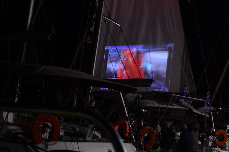 Mais bon, c'est comme ça. Y'en a même qui se projettent les nav's du jour sur la voile du bateau d'à coté :