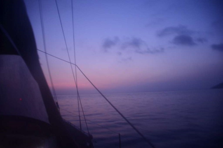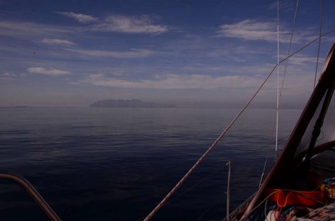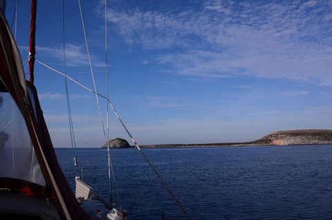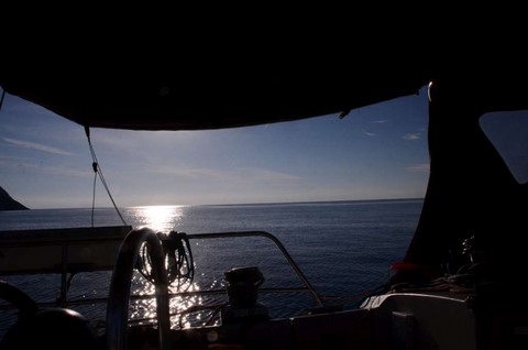 A l'aube, me voici déjà en route. Je suis plein d'optimisme, car la mer est le vent sont gentils. De surcroît, le ciel est beau: