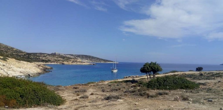 Encouragé par les deux sus-nommés, le 17 octobre, tôt le matin, je paye mes trois jours supplémentaires et je suis Manahiki vers Gramata, un très beau mouillage situé à l'extrème NW de Syros, qui permet de bien "ouvrir" la route de demain vers Kéa.
