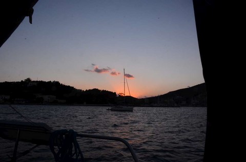 Je suis tellement fatigué que je refuse l'invitation des Manahiki pour le repas du soir. J'ai du me coucher vers 20h30, à peu près, car, demain, je veux faire 2 étapes dans la journée : Kéa/Pétali, puis Pétali/Voufalo, because le temps risque de se gâter et je suis tellement pressé de rentrer. Et comme c'est très long, je vais partir très tôt. Avant le lever du soleil.
