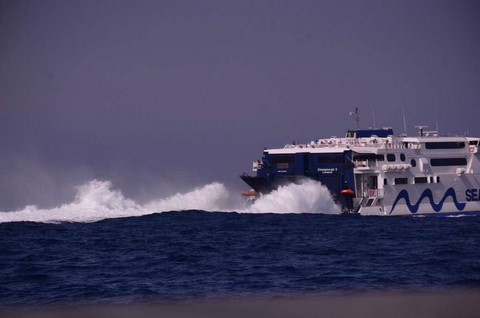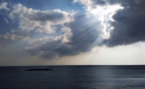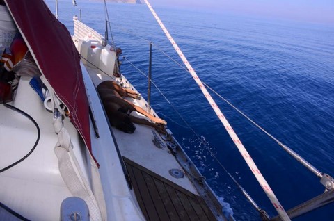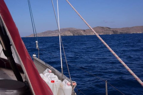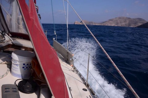 Au Nord de Kéa, les prévisions de houle donnent jusqu'à 2,5 mètres ! Et je peux vous dire, amis navigateurs océaniques, que 2,5 m de houle en méditerranée, au prés serré, c'est..euh.... pénible!