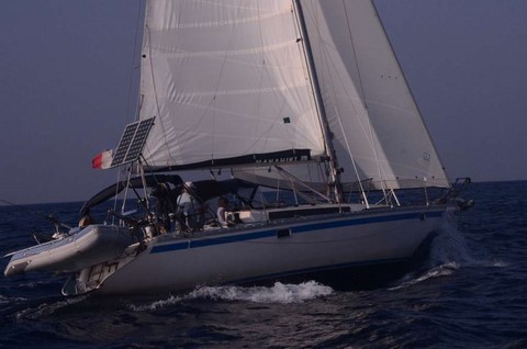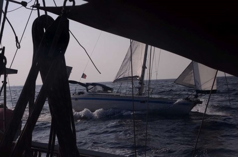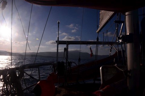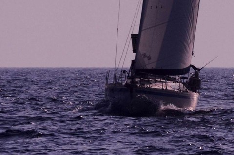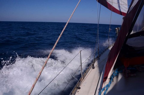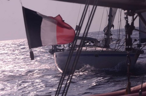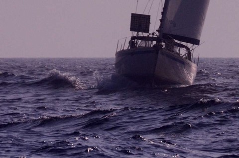 De mon coté, ça va. Mais je ne suis pas à l'aise. Je jongle avec les ris. le bateau est très très gîté. Avec une forte houle !